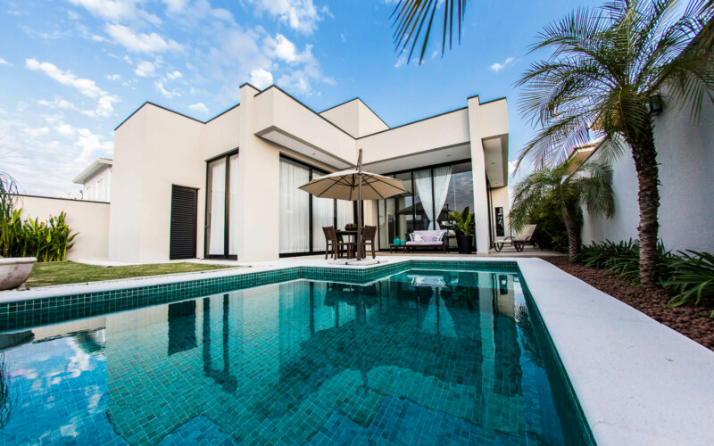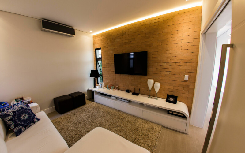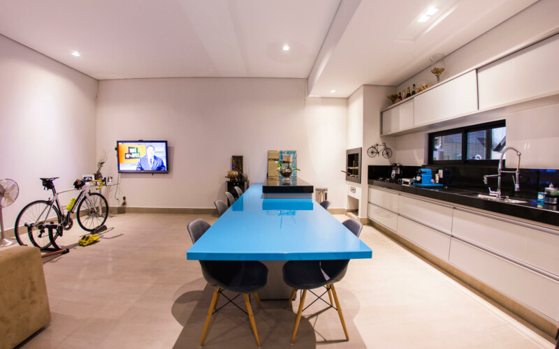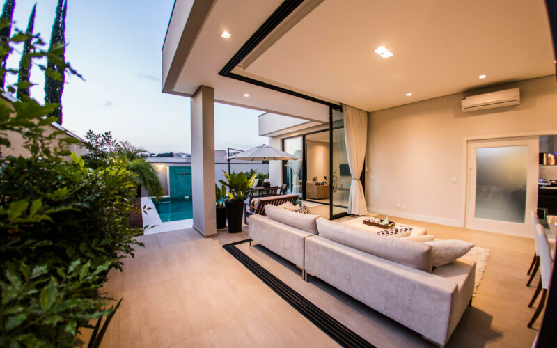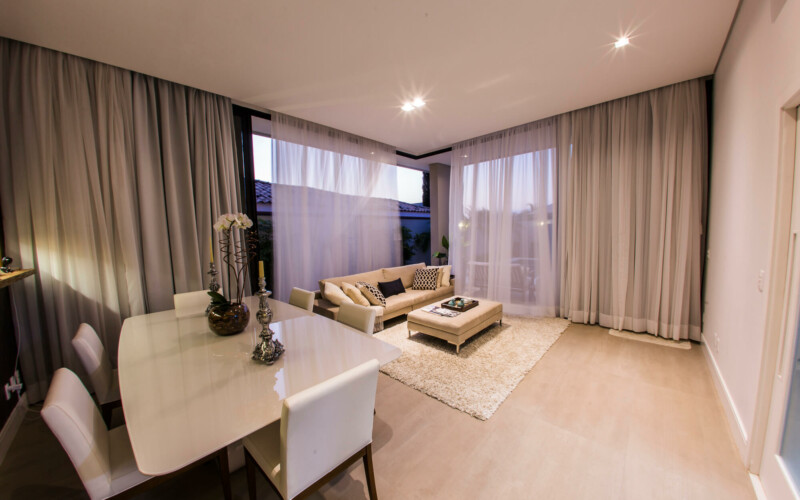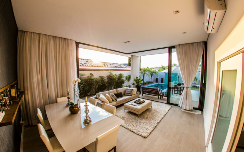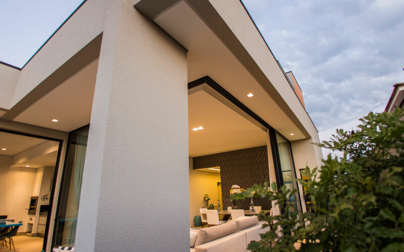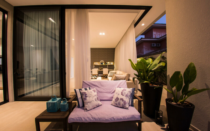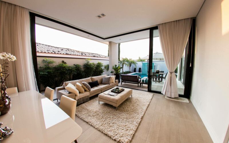 O projeto PA03 carateriza-se por uma ampla integração visual, os caixilhos as sala de estar proporcionam uma ampla abertura e transformam a sala em uma varanda integrada ao jardim e a área de lazer.