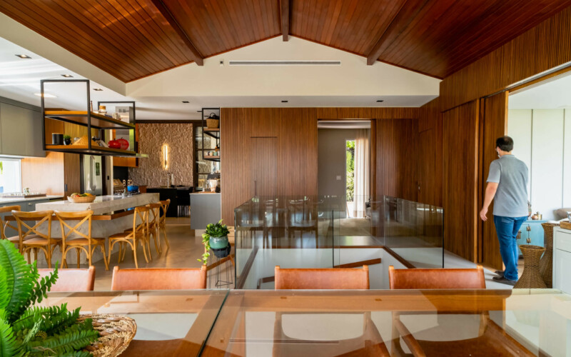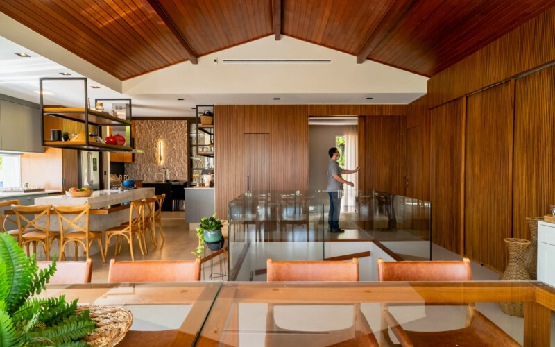 O projeto PD01, trata-se de uma reforma em loteamento fechado no município de Indaiatuba-SP. O projeto conta com um programa repleto de elegância, que pode ser observado nos acabamentos de alto padrão, forro madeirado e mobiliário. Os ambientes se comunicam de maneira fluida abraçando a paisagem natural existente no local. A área social se integra com a de lazer e traz permeabilidade luminosa para todo o projeto. A fachada abriga um lago artificial que se torna um oásis de tranquilidade logo na entrada.
